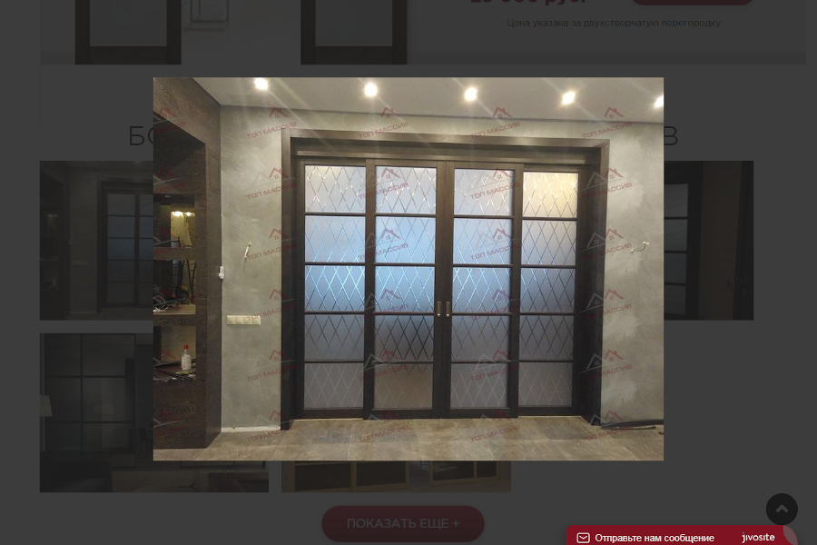 Мы неоднократно реализовывали данное решение на сайтах производителей дверей, но в случае с landing’ом пока существует лишь одна реализация. Это – одностраничник для компании «ТОП Массив», посвящённый межкомнатным перегородкам.