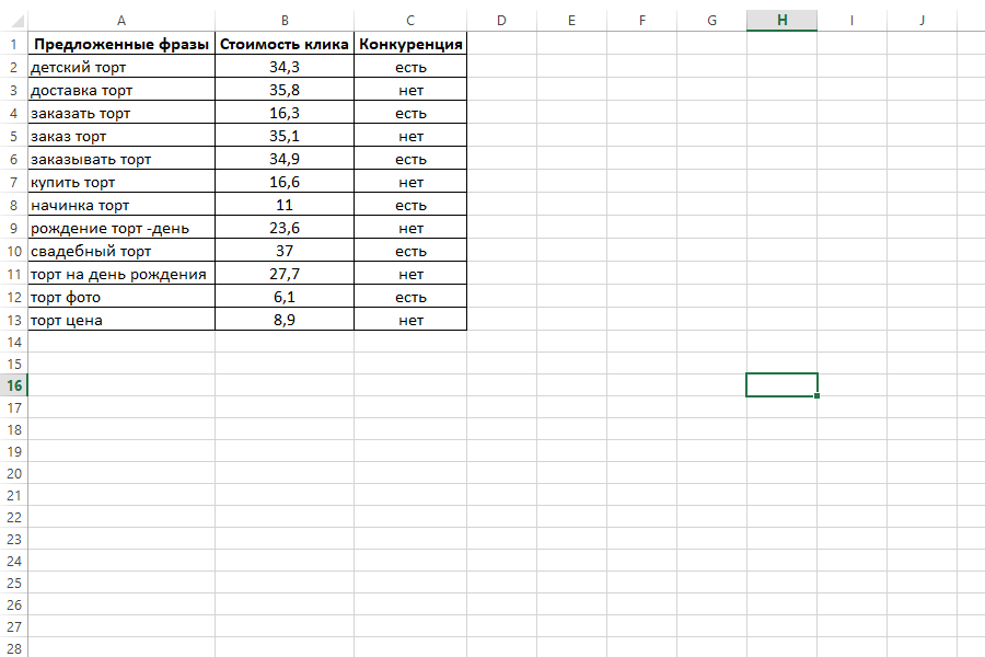 Теперь можно оценивать перспективы. Выберете фразы, у которых стоимость подходит под ваш прогноз, их них выберете те, где вы конкурентоспособны – это ваш беспроигрышный вариант.