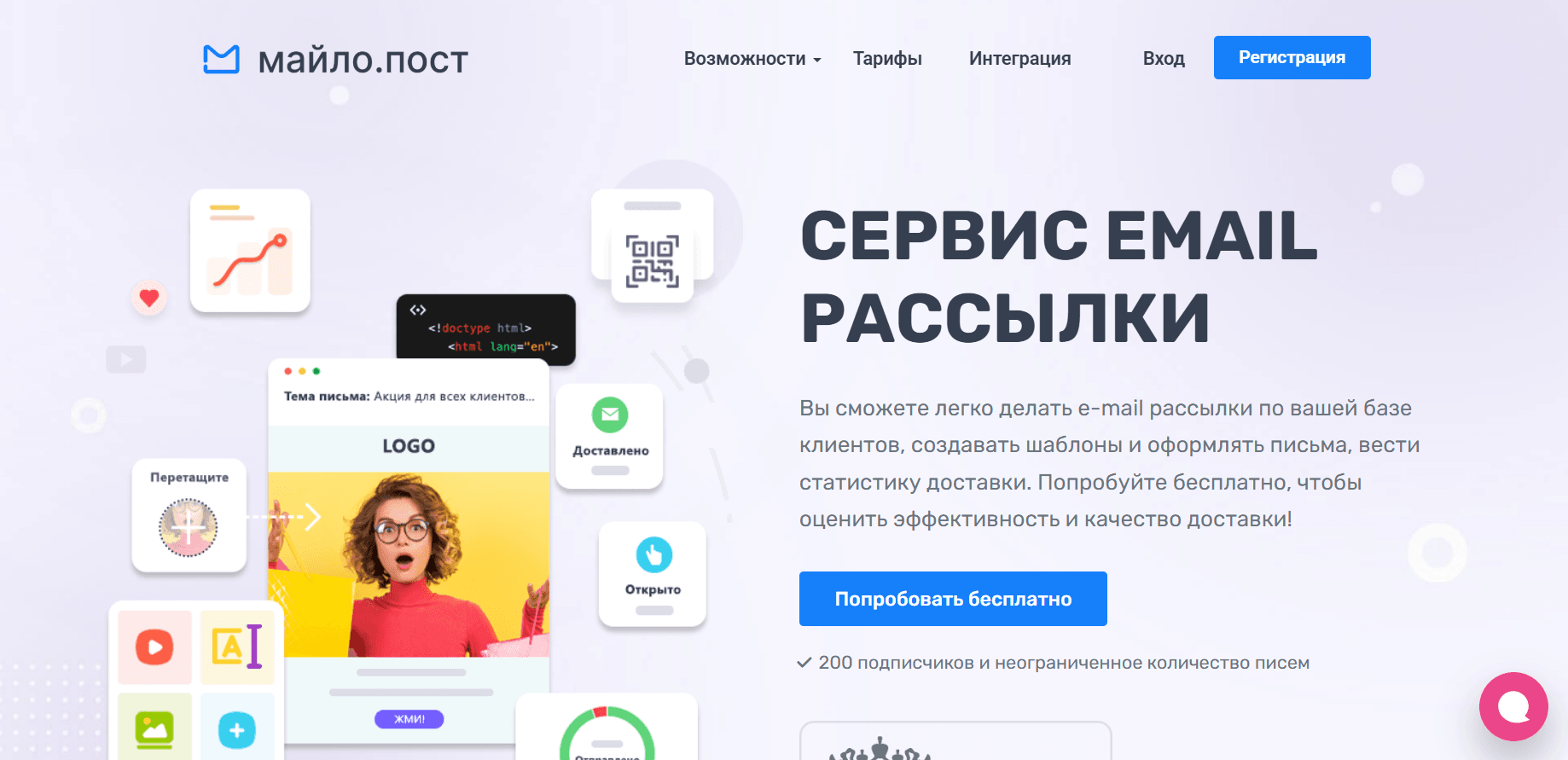Пробный период — 200 писем.