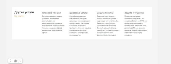 Если вы продаете товары, для сборки или установки которых нужна помощь специалиста — обычно это техника или мебель — то обязательно предложите клиенту помощь. Блок с описанием сопутствующих услуг поможет продемонстрировать вашу клиентоориентированность.