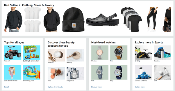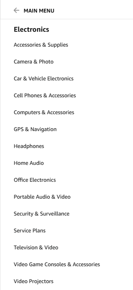Сайт Amazon известен своим удобным меню и быстрой навигацией. Посмотрите, как устроены их категории и фильтры.