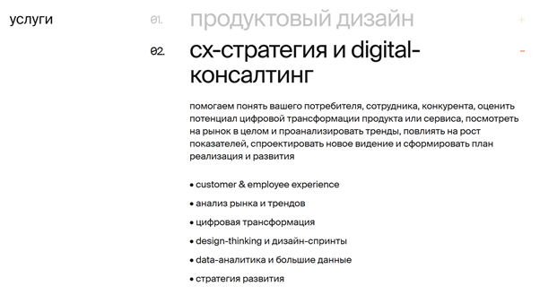 Плюсы описаны коротко, но емко и привлекательно для возможного клиента. Много пространства и структурированность делает преимущества еще значимее.
