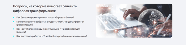Часто у потенциальных клиентов возникают сомнения или вопросы относительно услуги. Блок с ответами на частые вопросы помогает снять эти возражения и ускорить принятие решения.