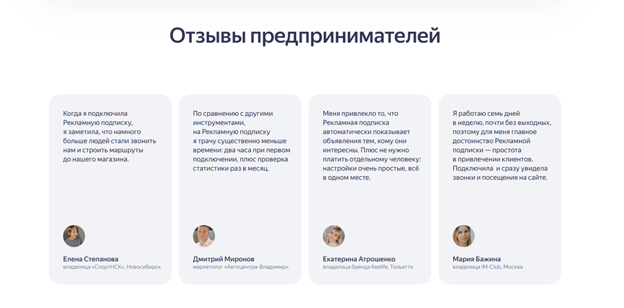 Фотографии, имена и должности людей, воспользовавшихся услугой, внушают доверие читателю.
