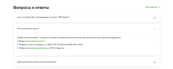 - Можно использовать формат FAQ (часто задаваемые вопросы), где каждый вопрос сопровождается развернутым ответом.
