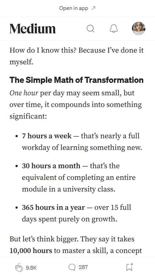 К примеру, на сайте Medium используется крупный, хорошо читаемый шрифт, умеренный интерлиньяж и широкие поля, что делает чтение статей комфортным даже на маленьких экранах.