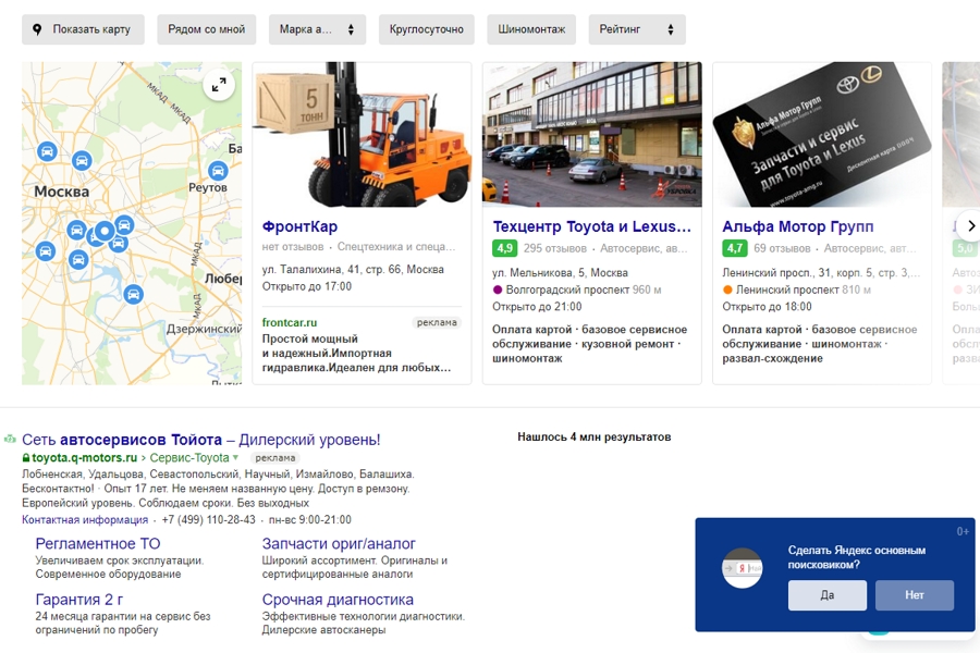 Подобная ситуация характерна и для ряда коммерческих запросов, а потому продвижение на “Yandex.Картах” и “GoogleMaps” играет немаловажную роль и требует соответствующего подхода.