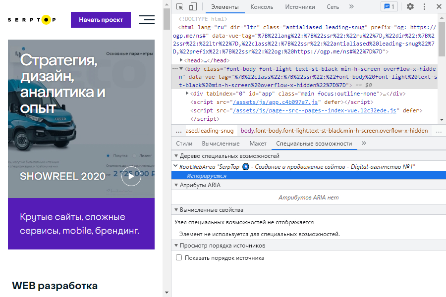 В ней можно увидеть элементы, отображаемые на сайте, типа “Grid”, которые применяются достаточно редко.