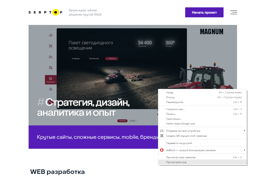 Он поможет получить сведения о тех или иных элементах сайта. Как открыть консоль разработчика в браузере «Хром», которую мы и рассмотрим? Просто наведите на любую область сайта курсор и кликните правой кнопкой мыши. Перед вами раскроется вот такое меню: