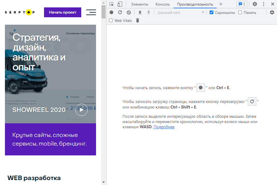 Эти данные можно сравнить с теми, которые считаются оптимальными, и провести соответствующую оптимизацию. Для того чтобы получить отчёт, нужно нажать на кнопку записи и начать выполнять на сайте те или иные действия.