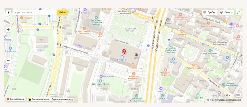 Карта с адресом офиса компании: растянуть по ширине экрана с небольшими отступами по бокам, как здесь: