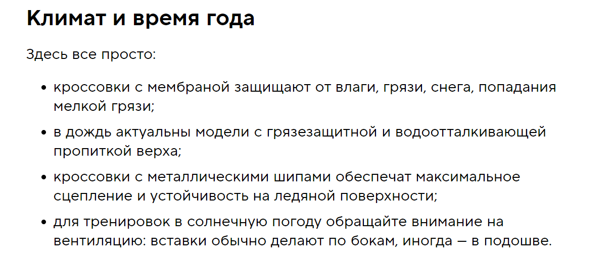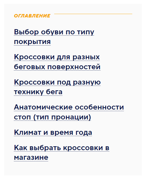 Спортмастер, например, сделал в статье сразу несколько блоков, подходящих для бегунов при различных возможных запросах.