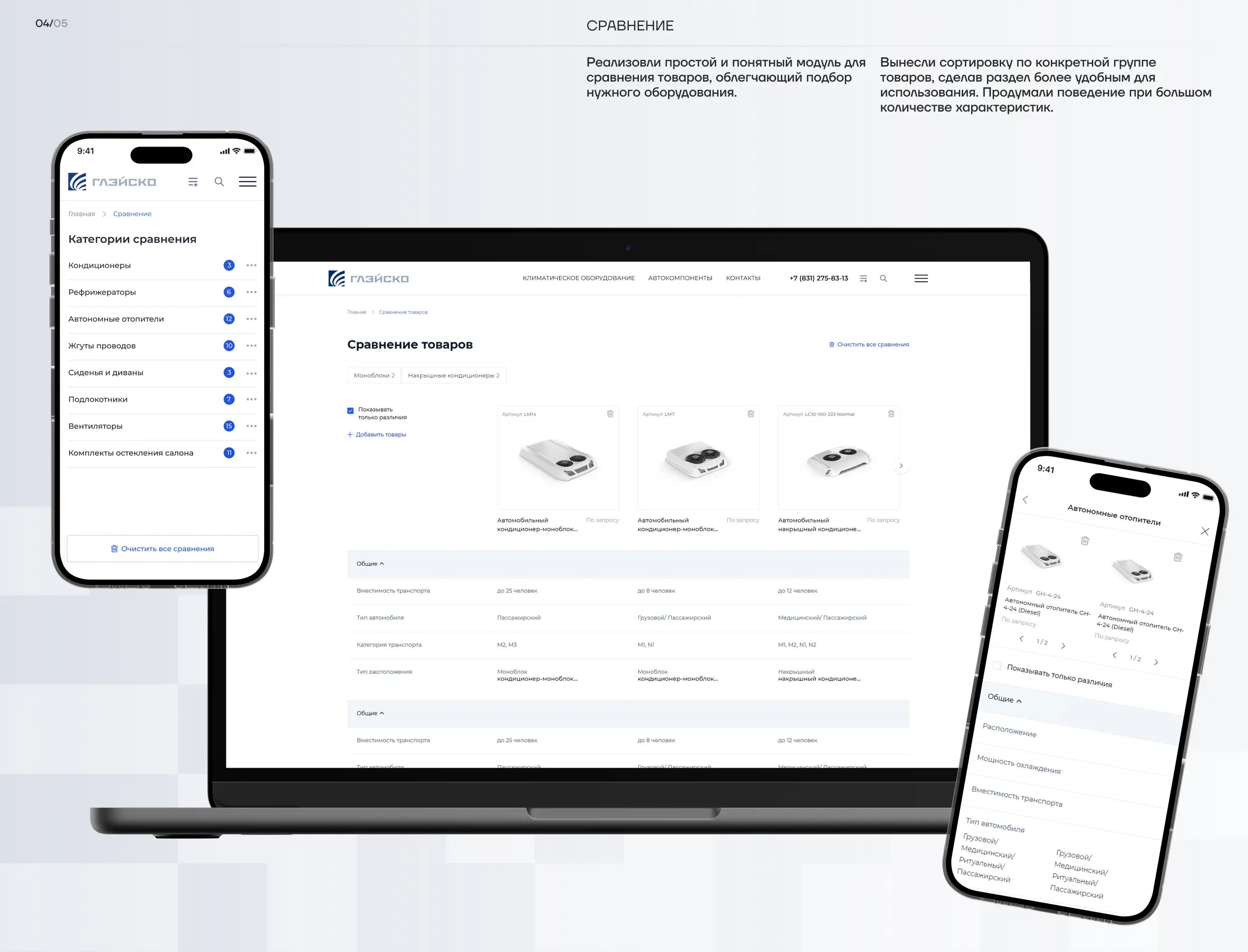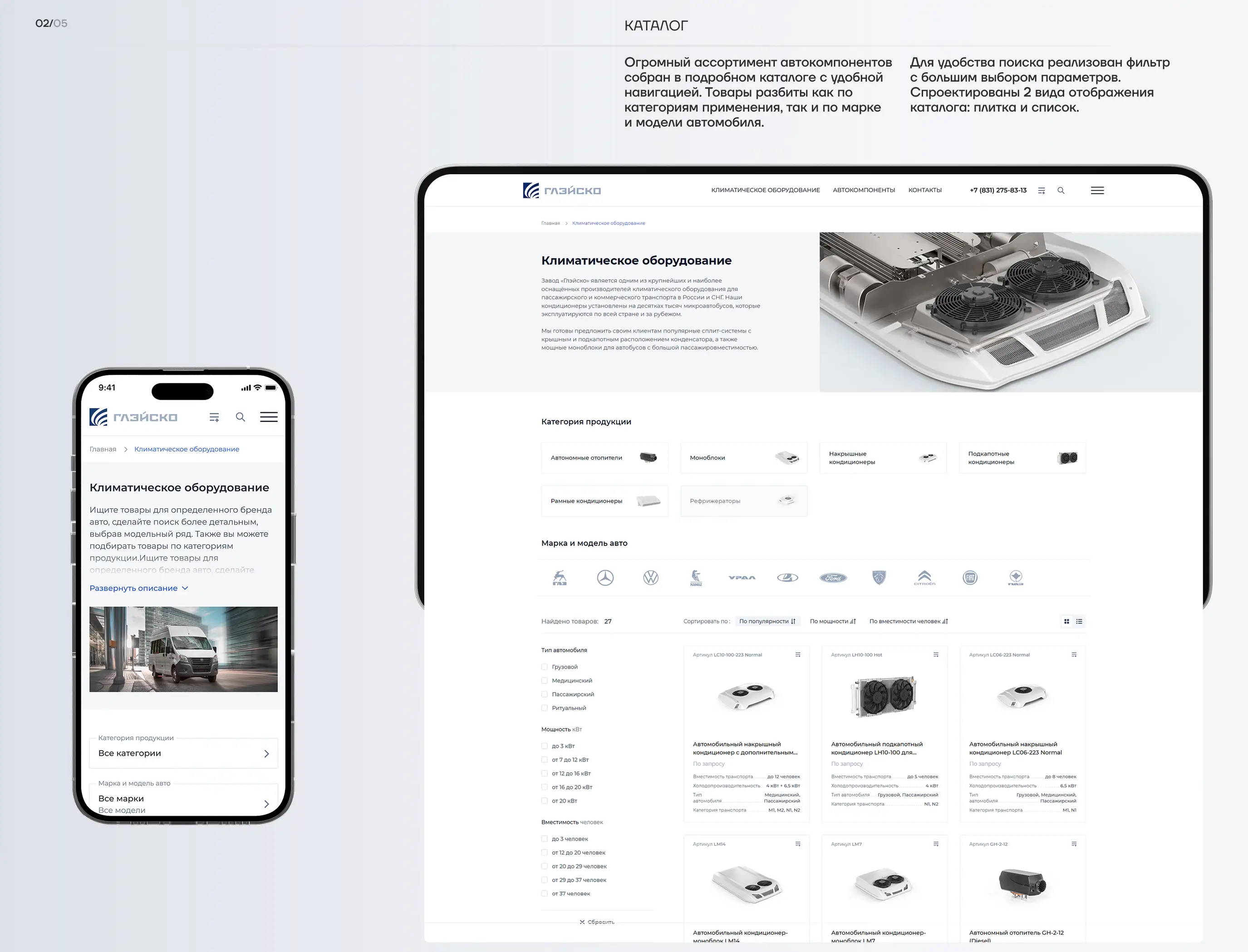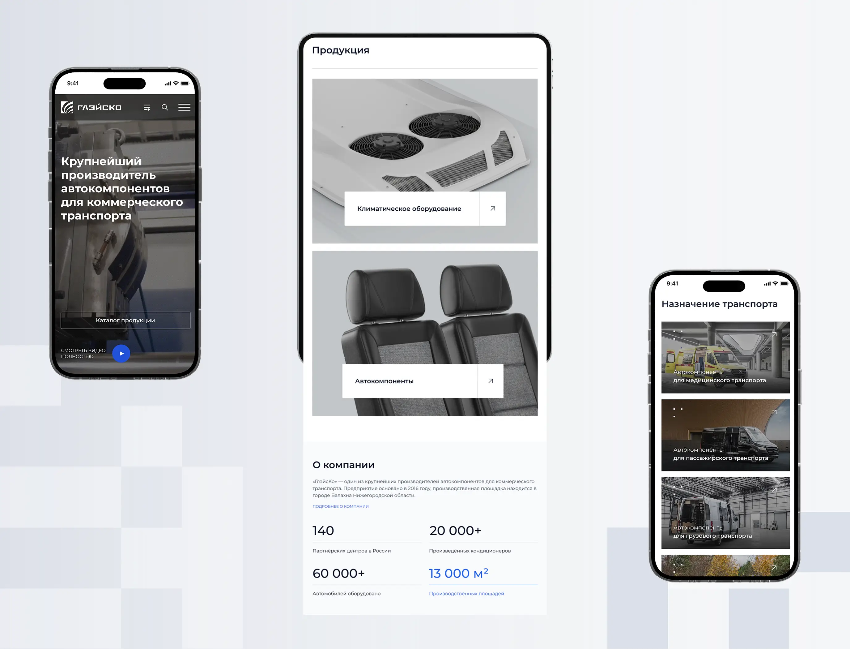 Разработали для Глейско современный сайт-каталог с эффектным промо-представлением продукции и философии бренда. Внедрили интуитивный поиск, фильтры и адаптивный дизайн. Рост вовлеченности на 50% и увеличение конверсии в заявки.