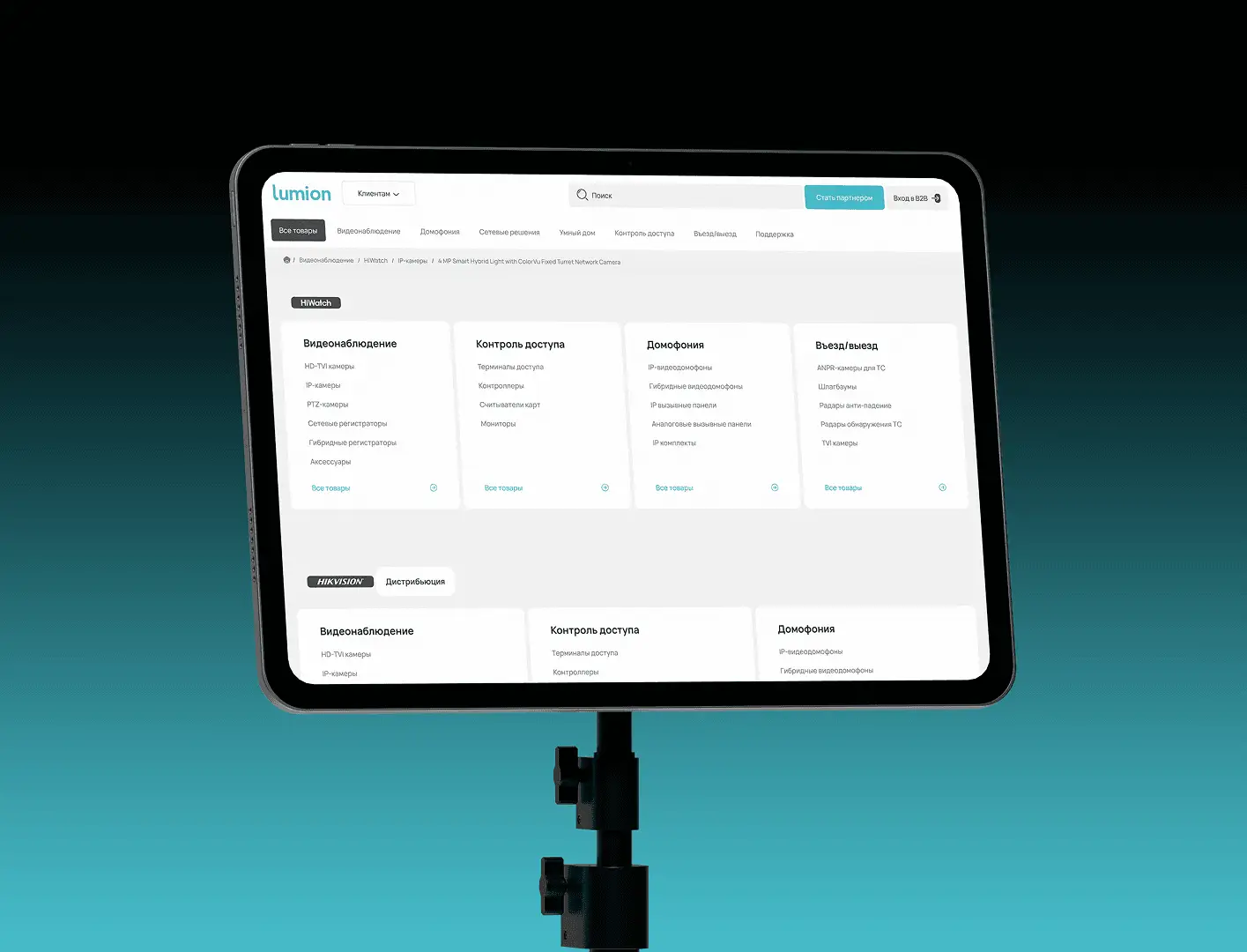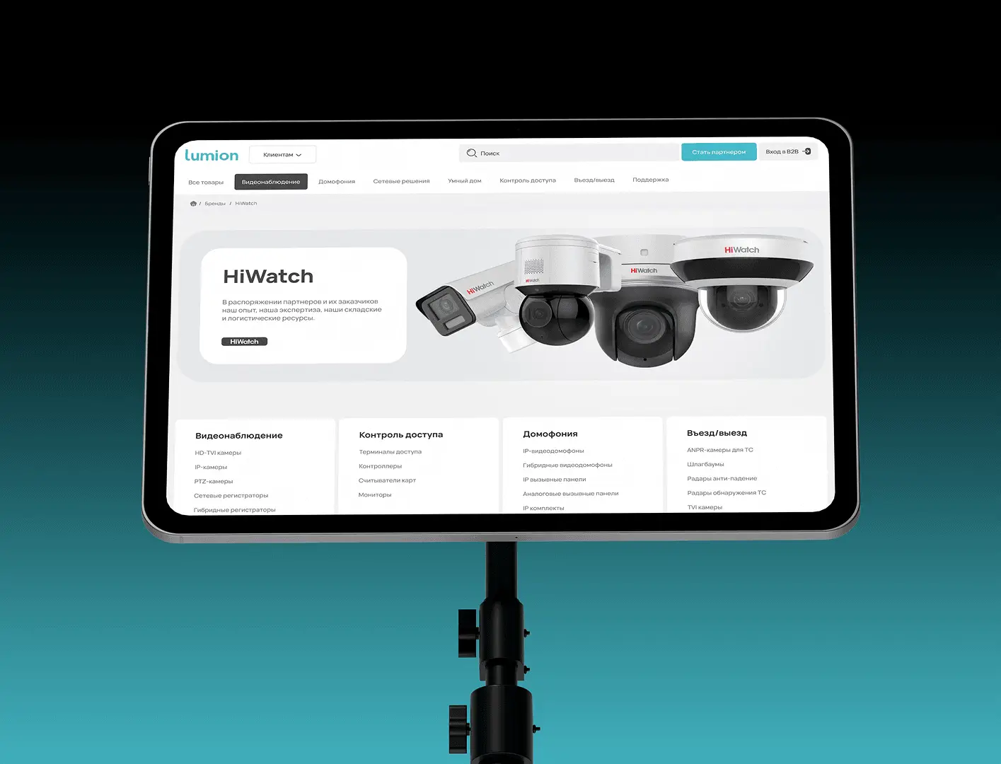 Разработан сайт-каталог для дистрибьютора «Люмион» с удобным представлением всего спектра техники брендов EZVIZ, HiWatch, Hikvision и Ruijie | Reyee. Сайт обеспечивает интуитивную навигацию по брендам и категориям товаров, а также быстрый поиск для эффективного подбора оборудования.