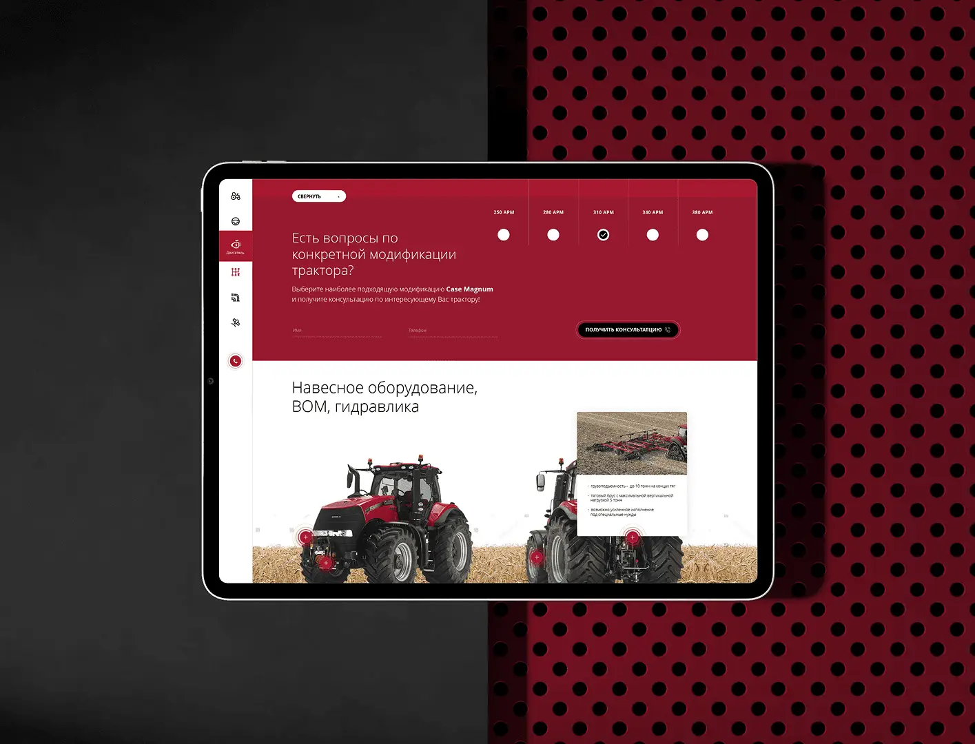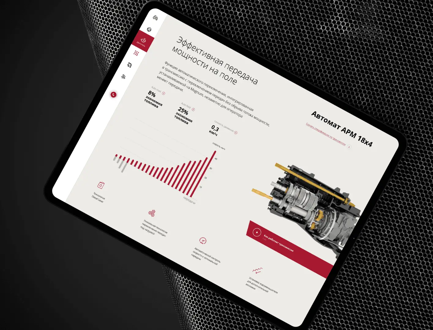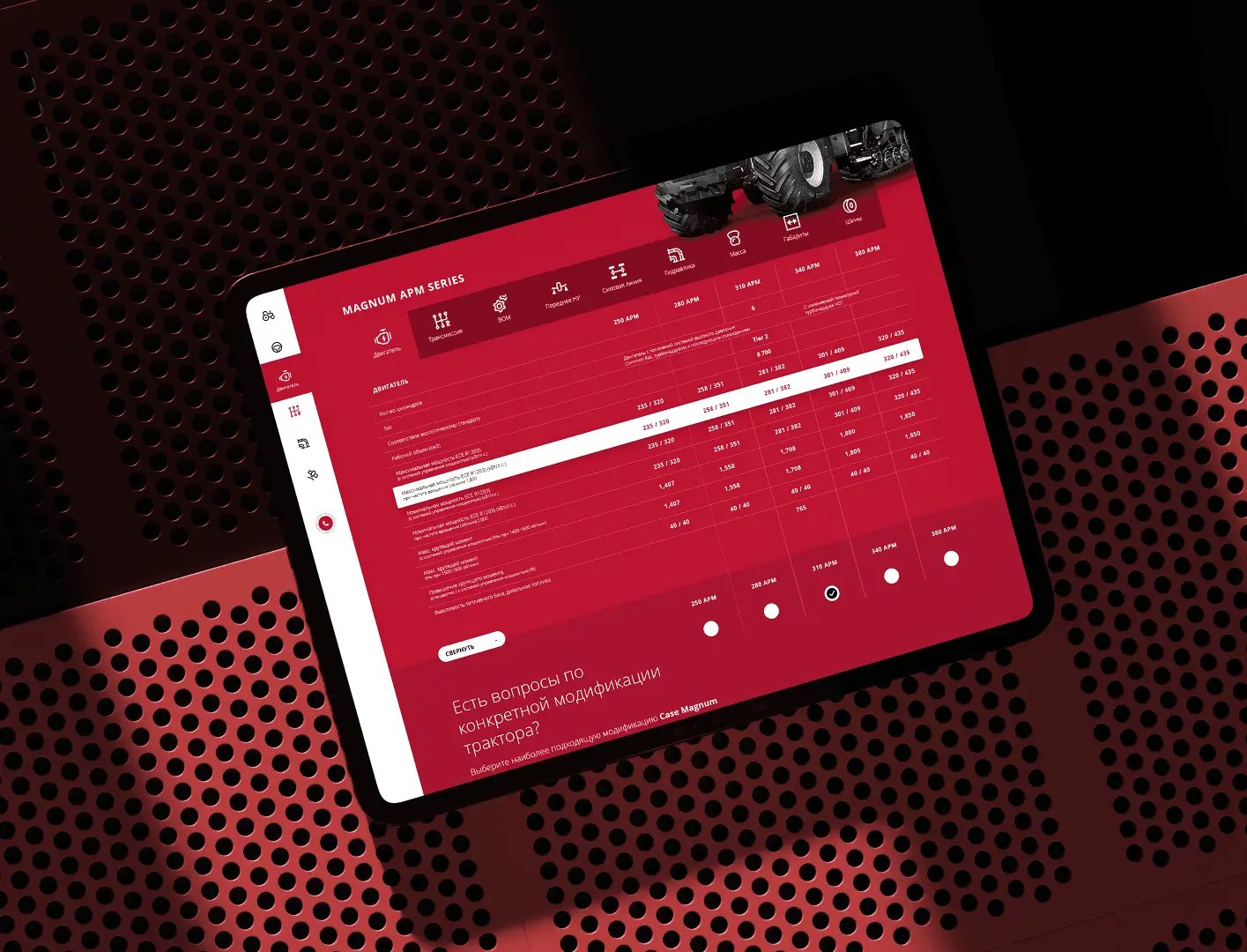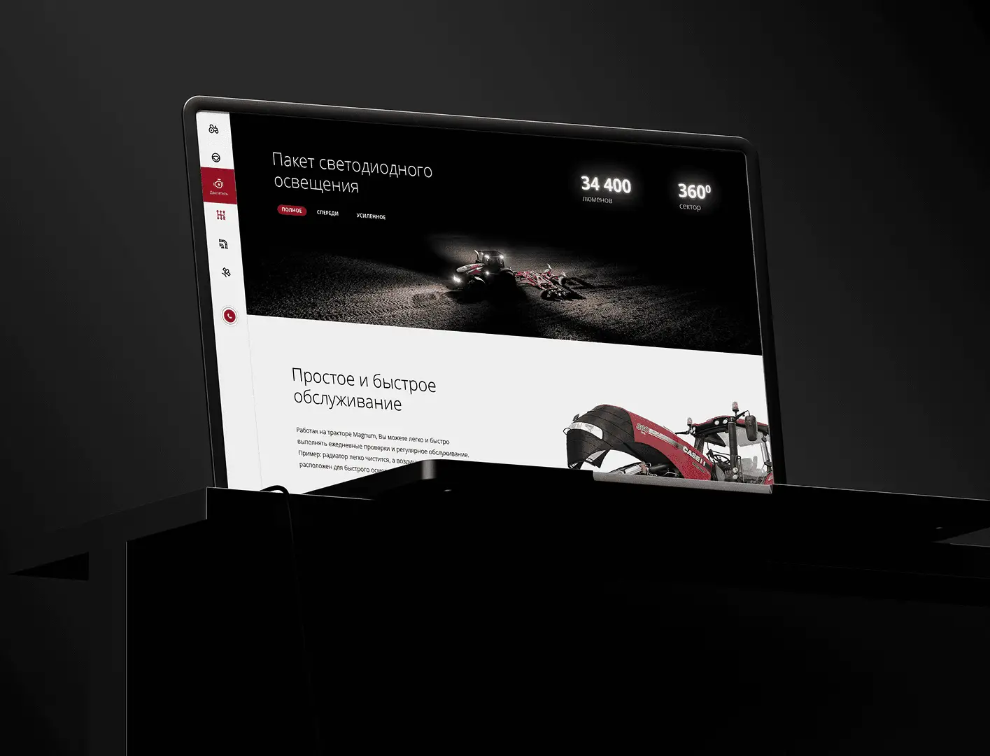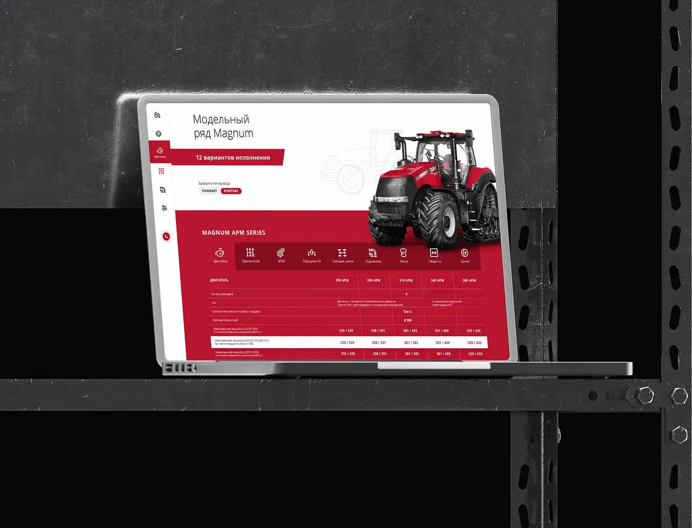 Разработали дизайн-концепцию промо-лендинга для тракторов Magnum с фокусом на презентацию ключевых преимуществ: производительности, технологичности и надежности. Визуальная архитектура построена вокруг интерактивных блоков с характеристиками и сценариев применения. Концепция нацелена на конверсию лидов среди крупных агрохолдингов.