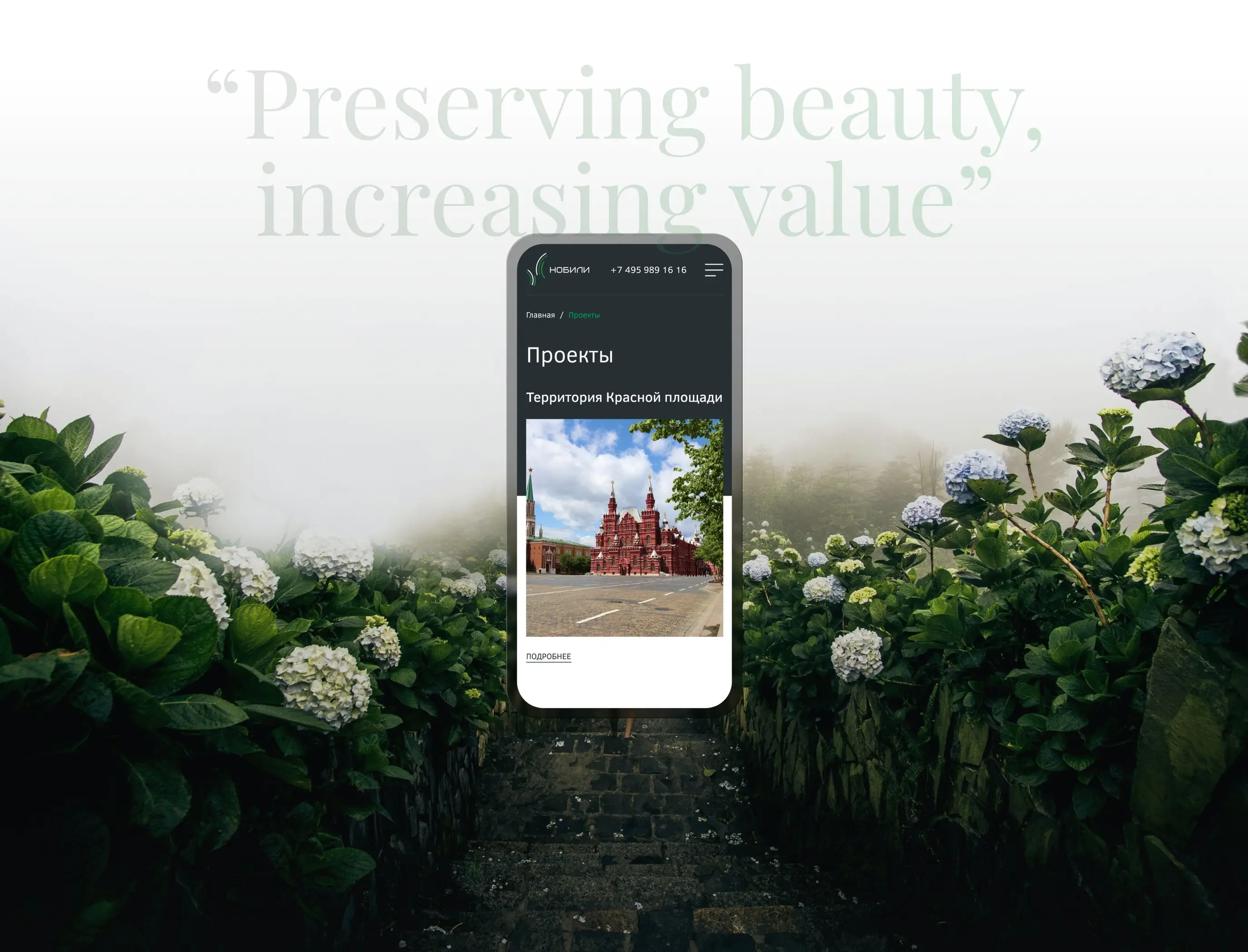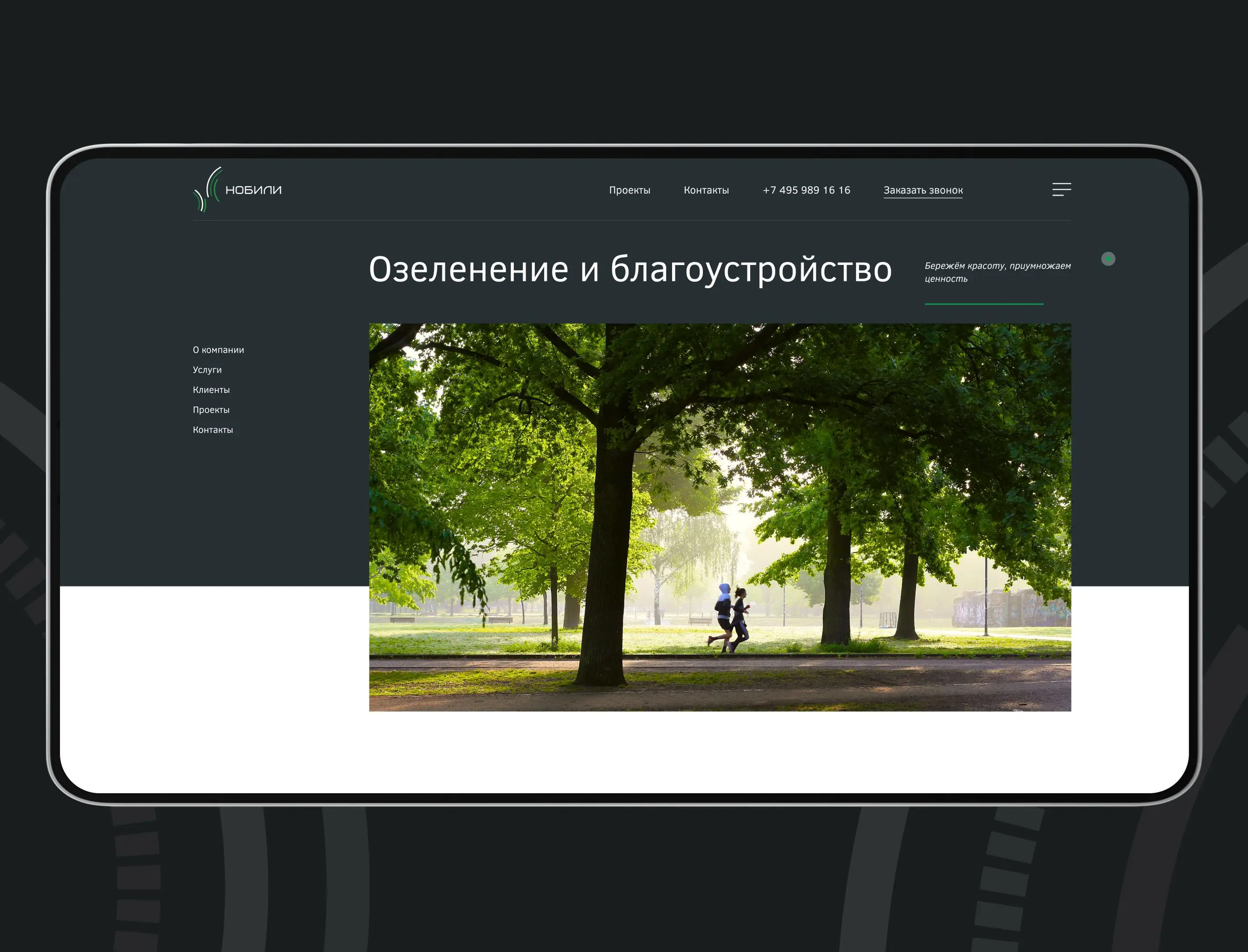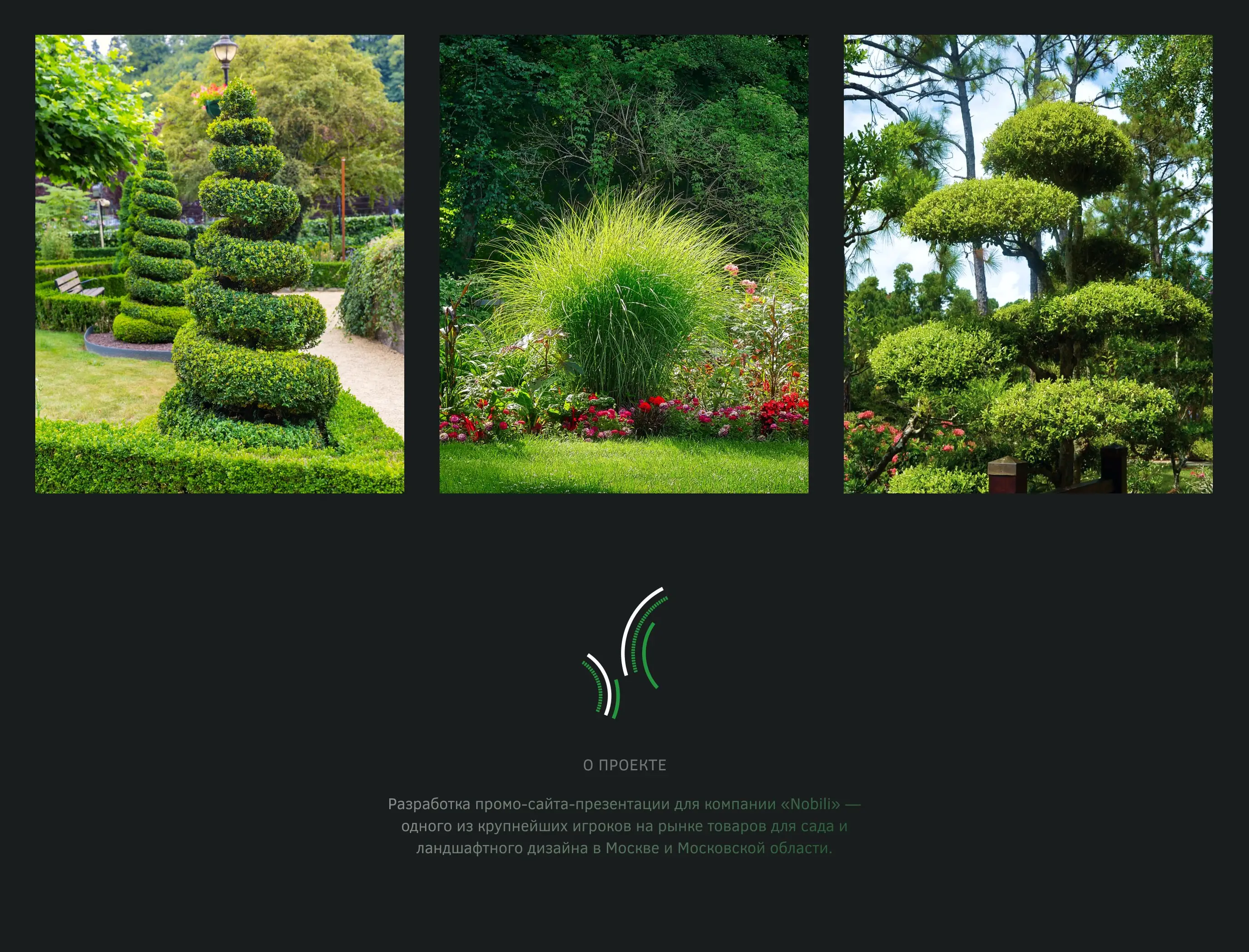 Для Nobili создан промо-сайт с атмосферным дизайном, каталогом услуг и примерами реализованных проектов. Новый ресурс повысил узнаваемость бренда, усилили доверие и обеспечили рост обращений от B2B-клиентов в сфере благоустройства и озеленения.