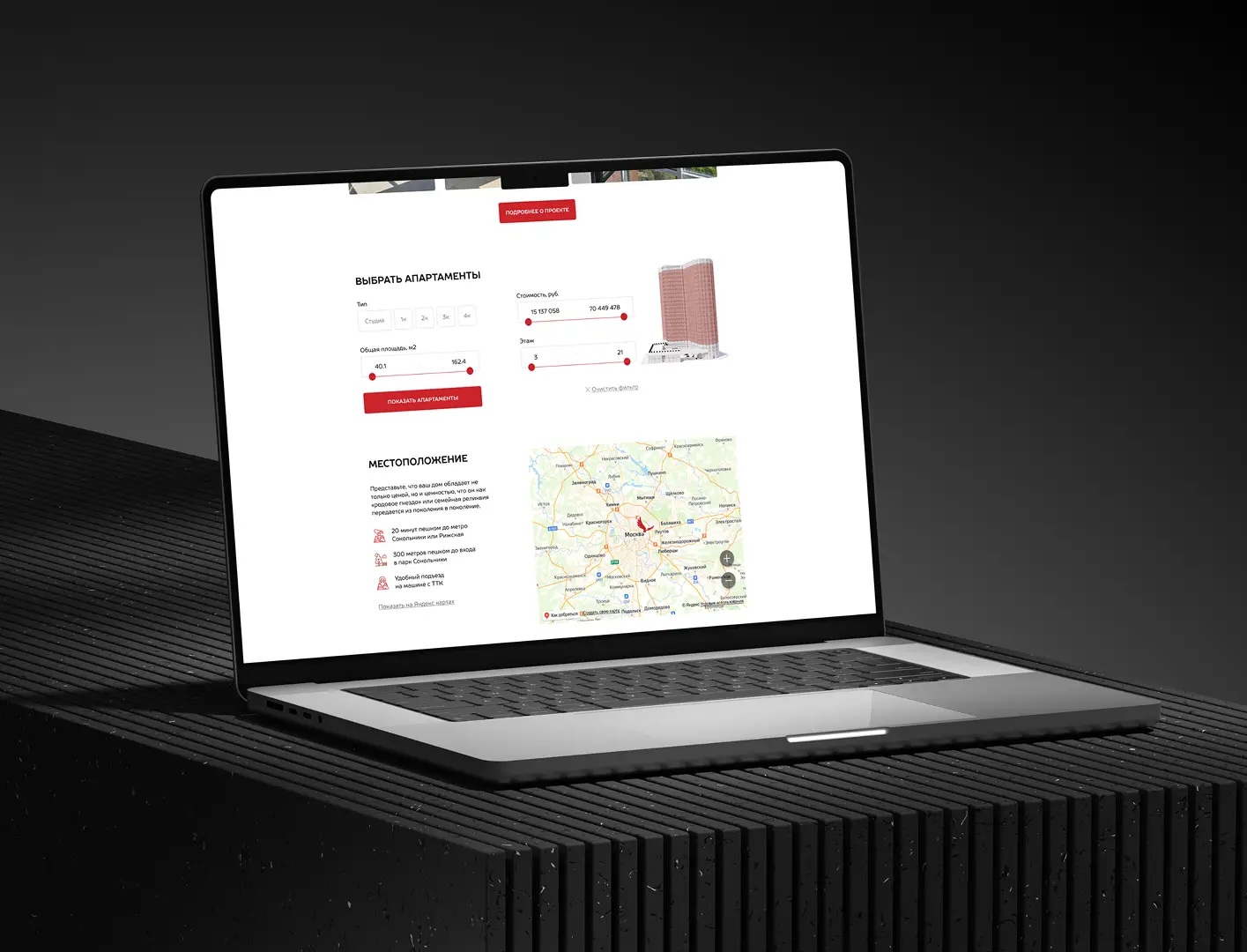 Разработан сайт апарт-комплекса «Резиденция Сокольники». Спроектирована структура проекта, реализован каталог апартаментов с планировками и характеристиками, фотогалерея, разделы с документами и условиями покупки. Настроены формы заявок с синхронизацией в Битрикс24, обратная связь и адаптивный интерфейс для всех устройств.