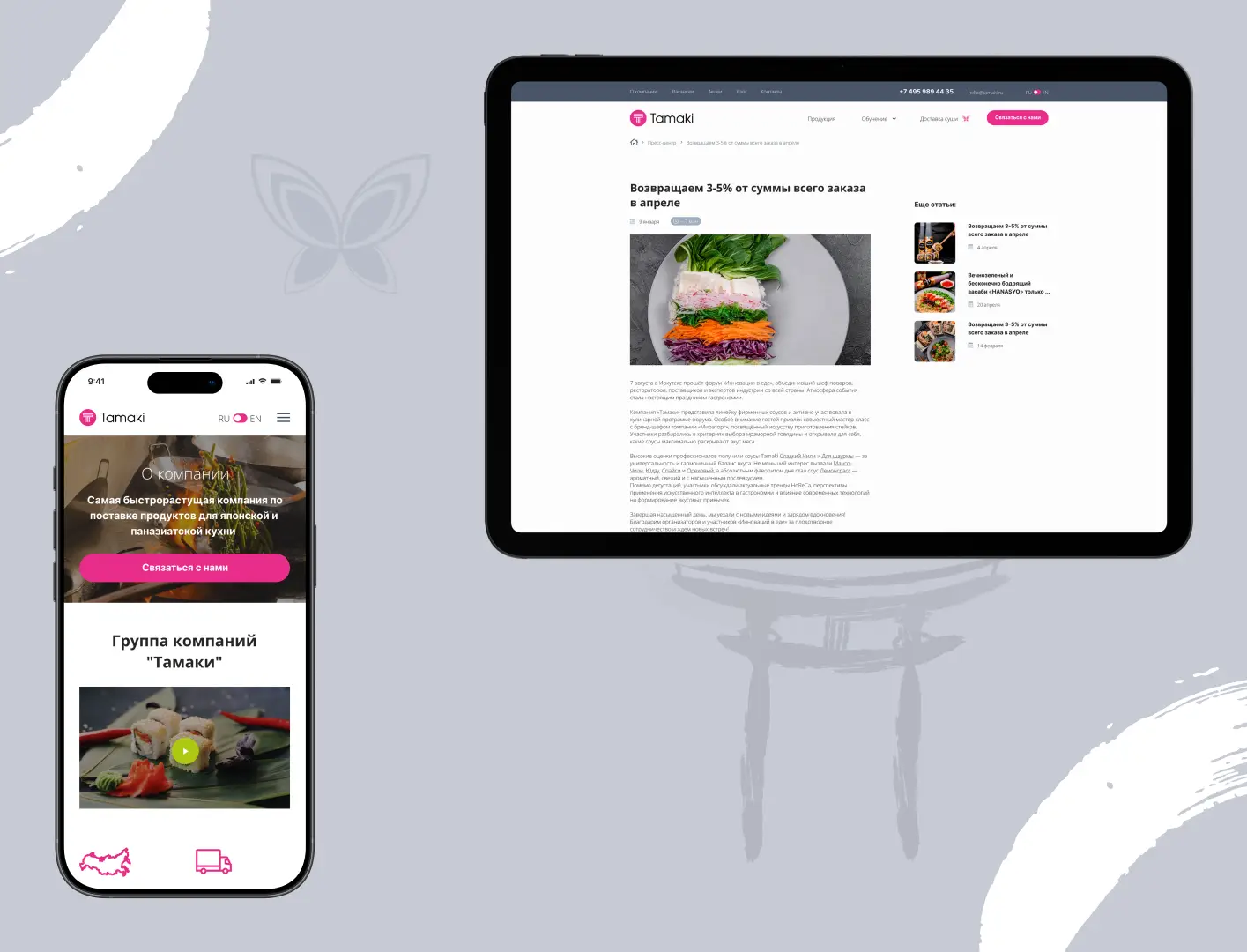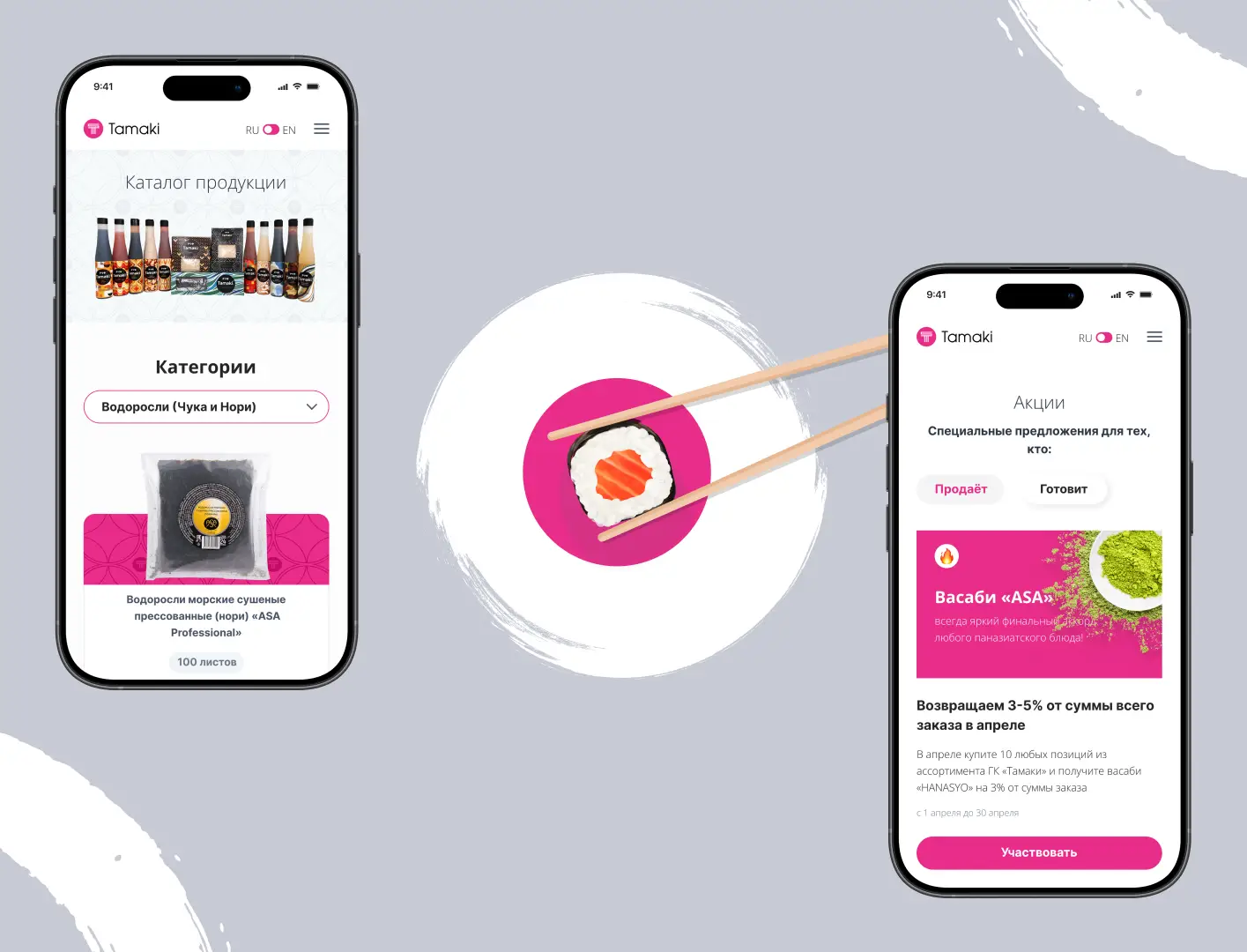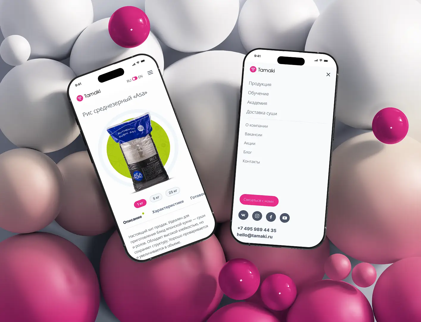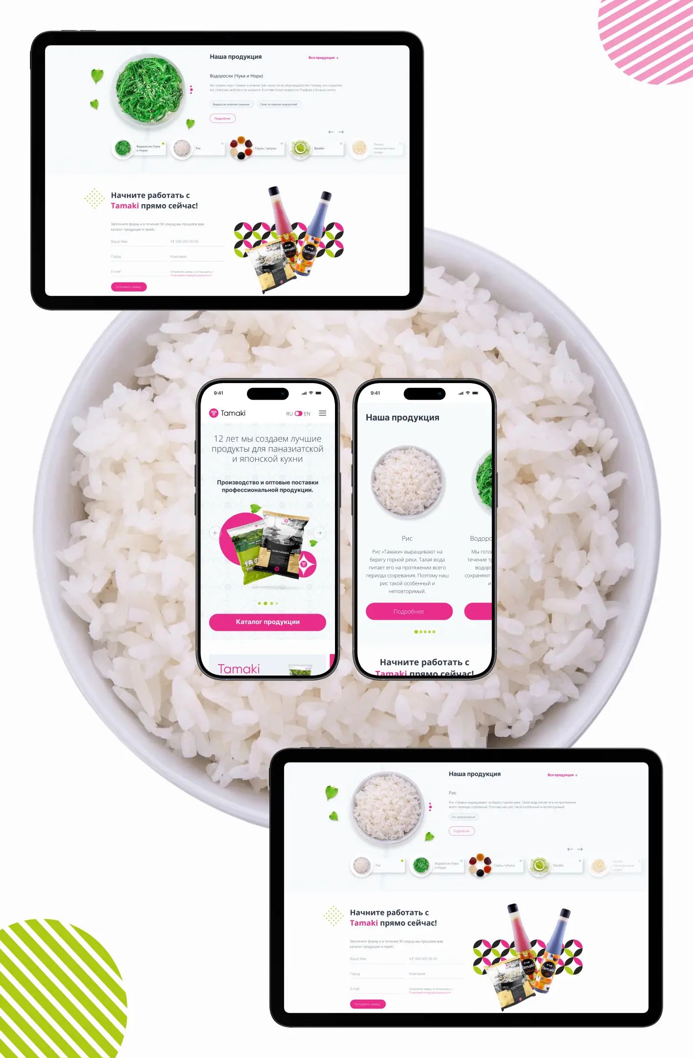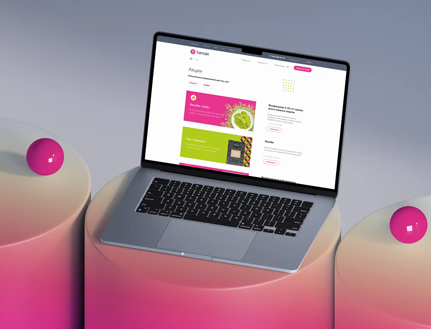 Разработали корпоративный сайт-каталог для бренда «Tamaki» — лидера в производстве продуктов для японской, паназиатской и фьюжн-кухни. Структура сайта отражает двойную стратегию компании: эксклюзивный раздел для профессионалов и розничных покупателей. Акцент на миссии — создании уникальных вкусов — усилил эмоциональное позиционирование бренда и увеличил вовлеченность аудитории.