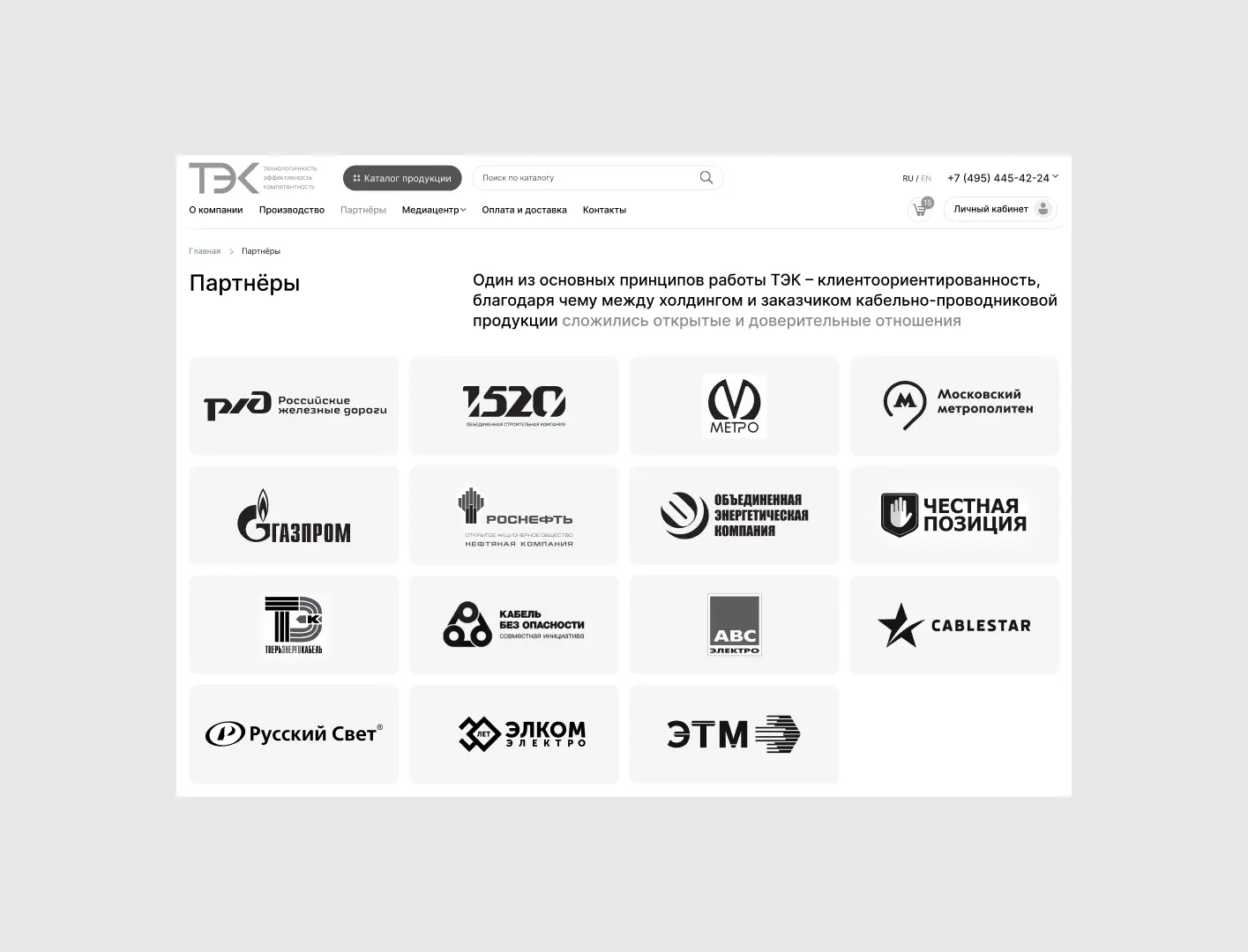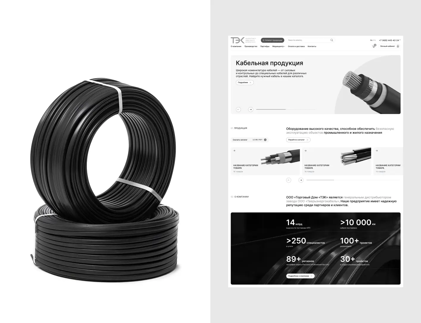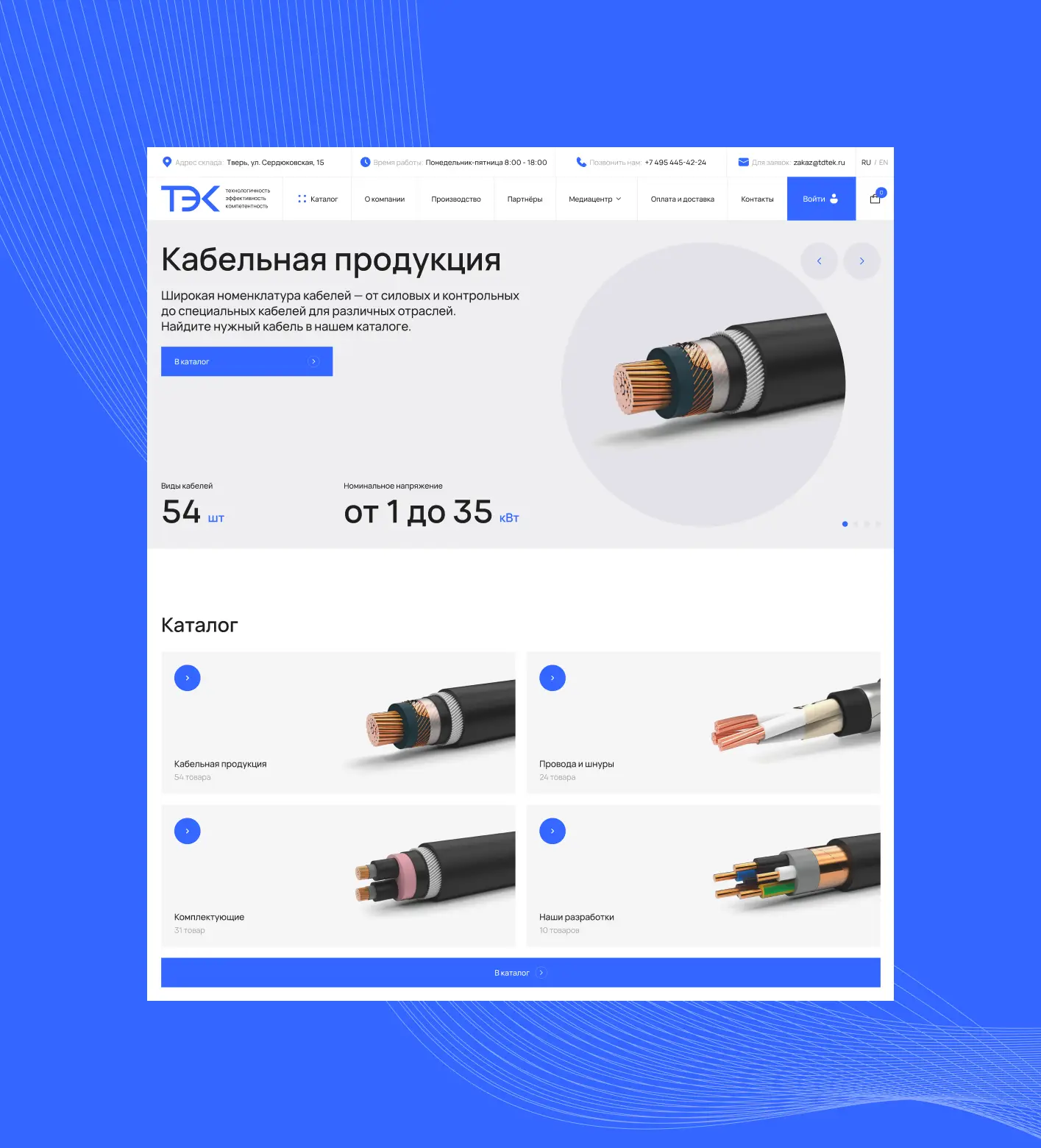 Разработали прототип интернет-магазина с личным кабинетом для компании ТЭК, специализирующейся на продаже кабельной продукции. Продумана структура каталога, удобная навигация и функционал оформления заказов. Решение упрощает работу с клиентами, автоматизирует обработку заявок и повышает конверсию обращений.