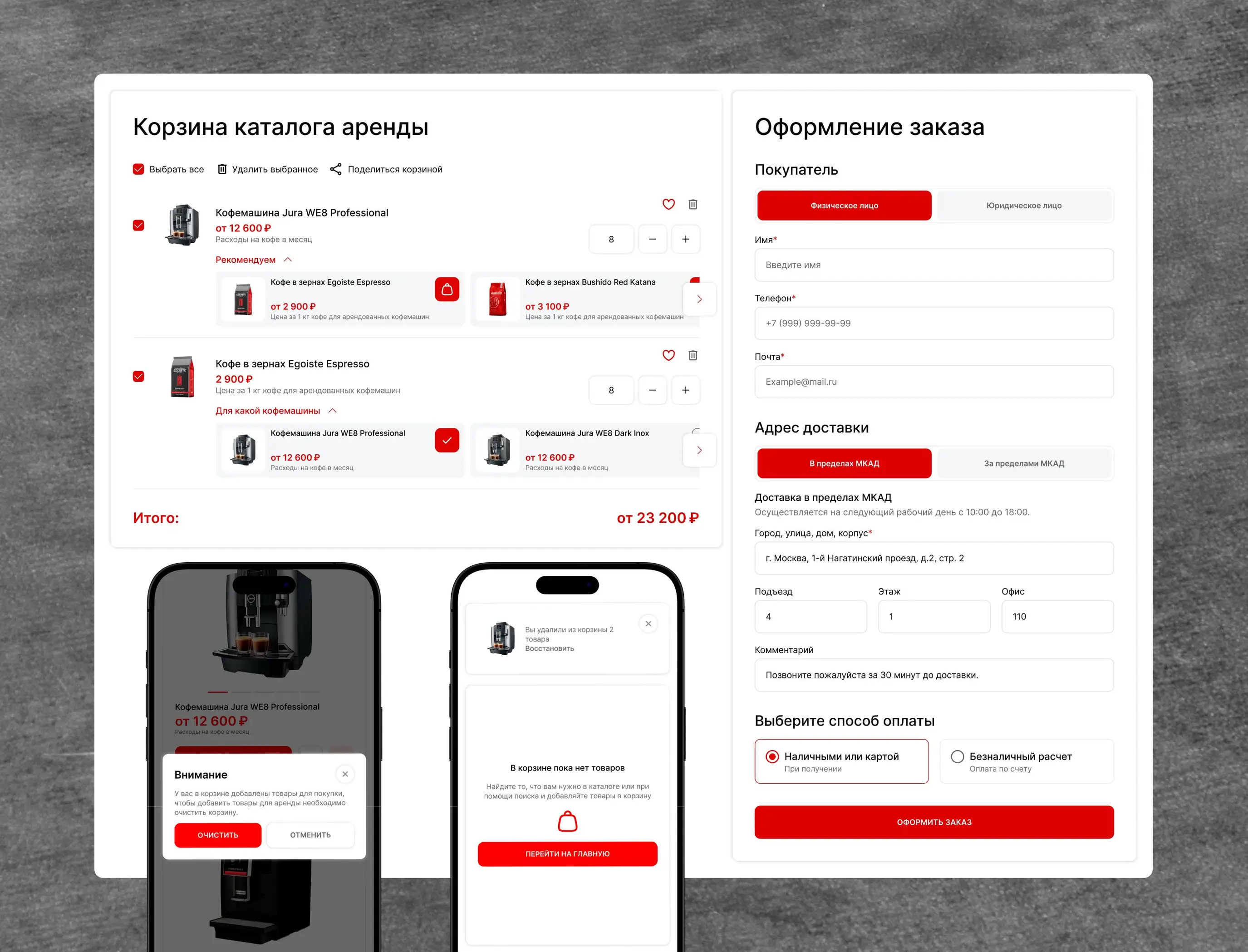 Разработали комплексный E-commerce проект с двумя каталогами, умной корзиной (разделение покупки/аренды) и гибкой системой торговых предложений. Интеграция с CRM автоматизировала workflows. Рост среднего чека на 25% и ускорение обработки заказов.