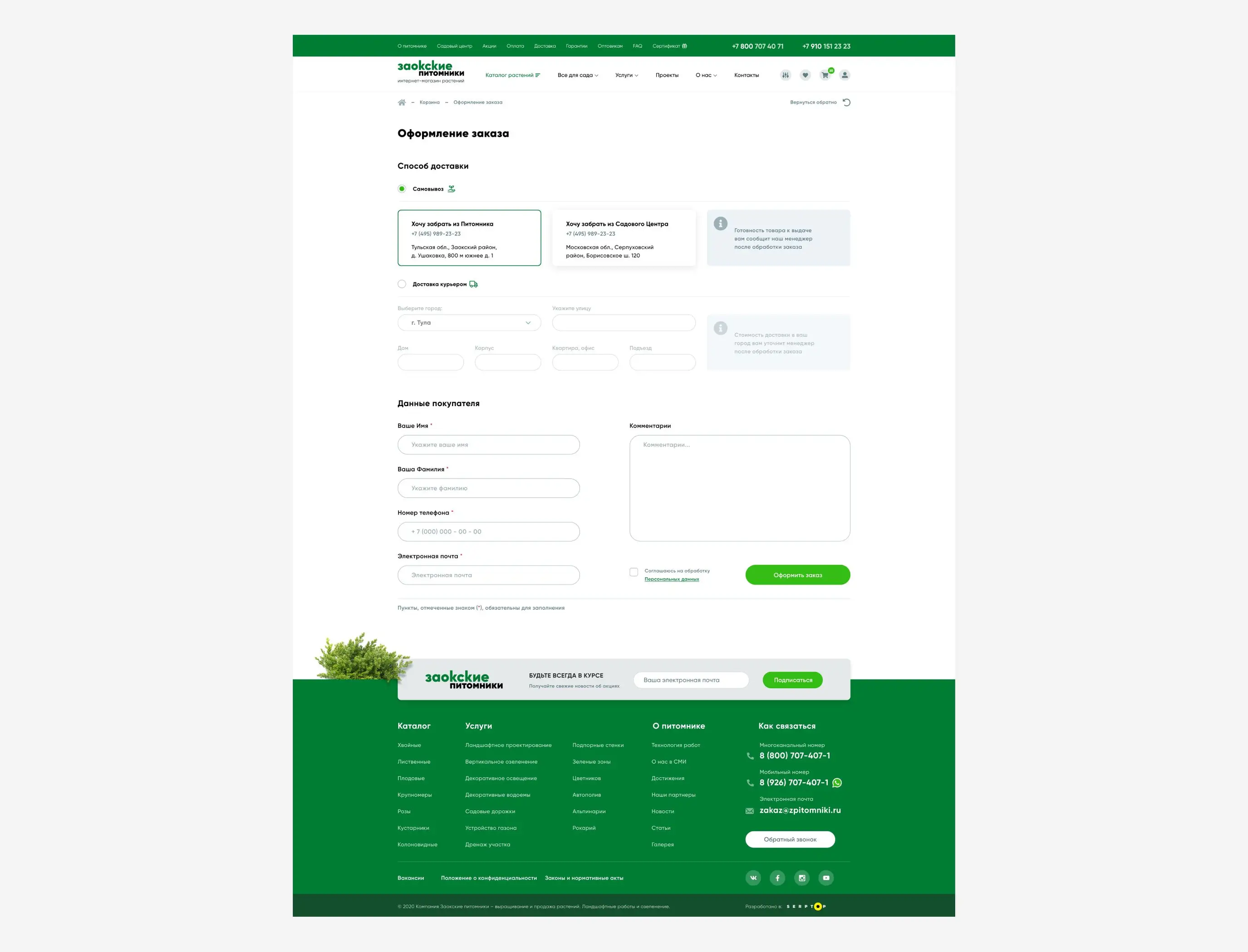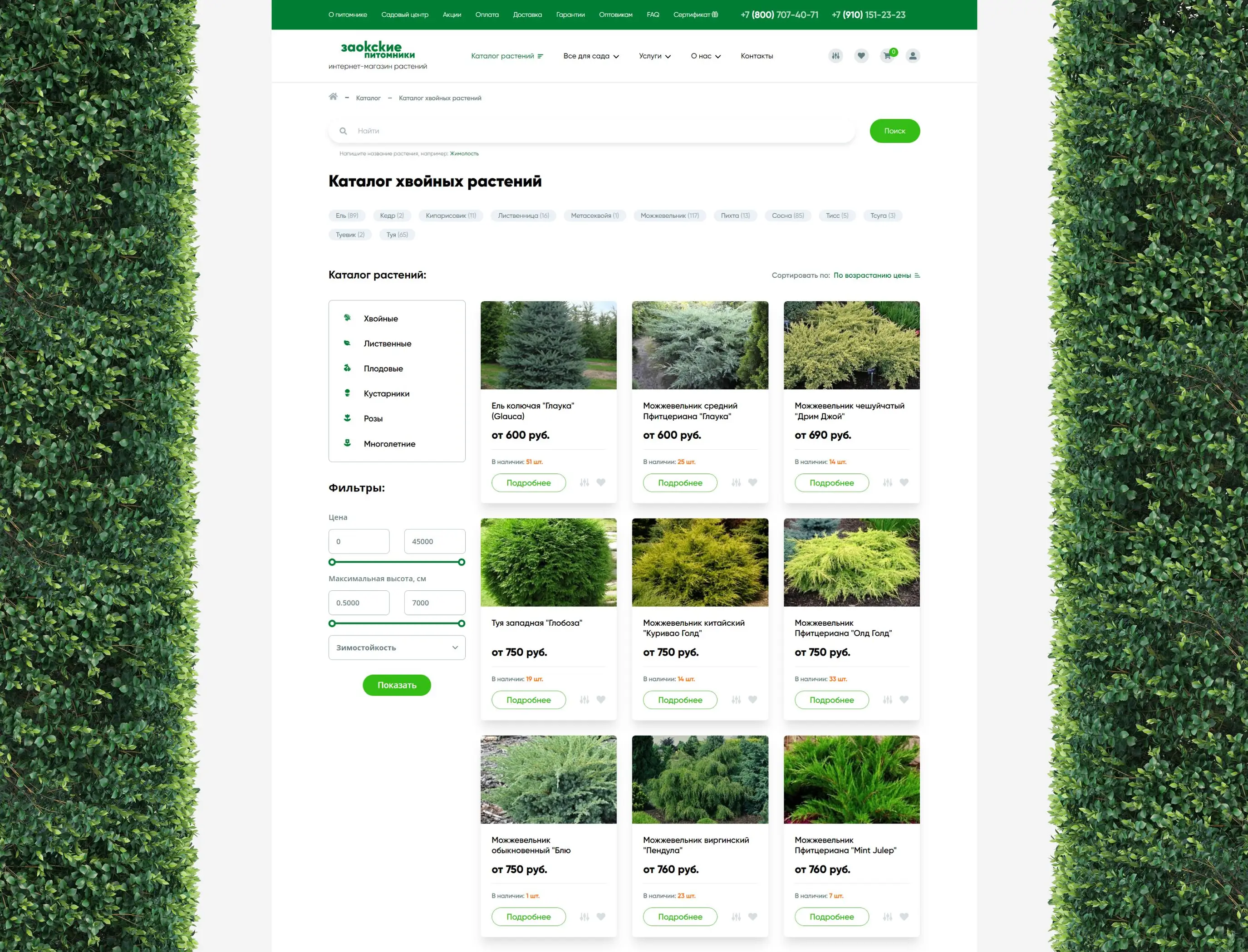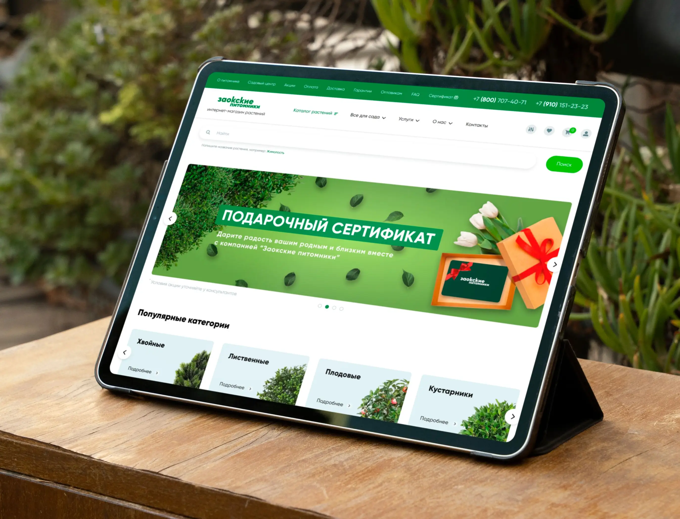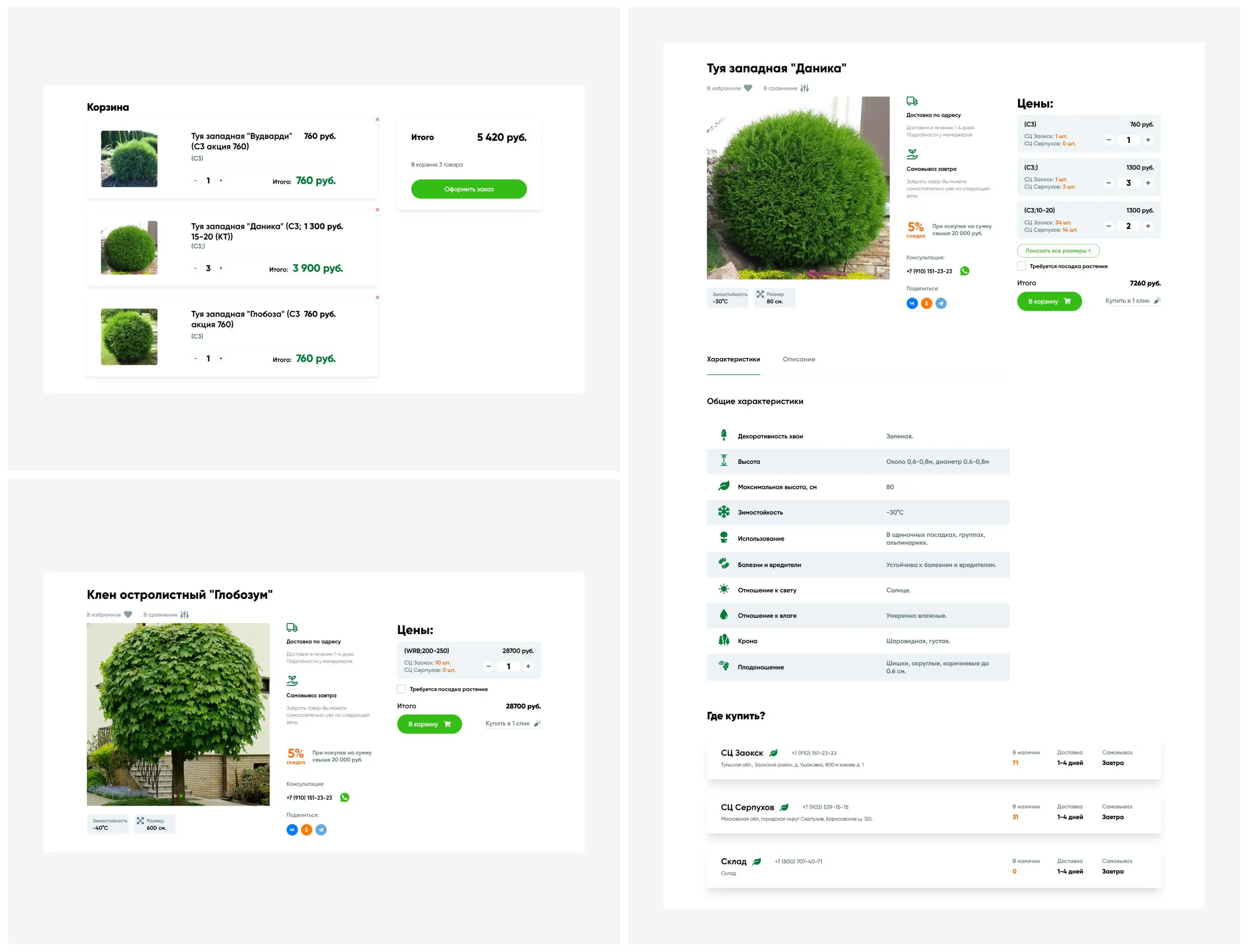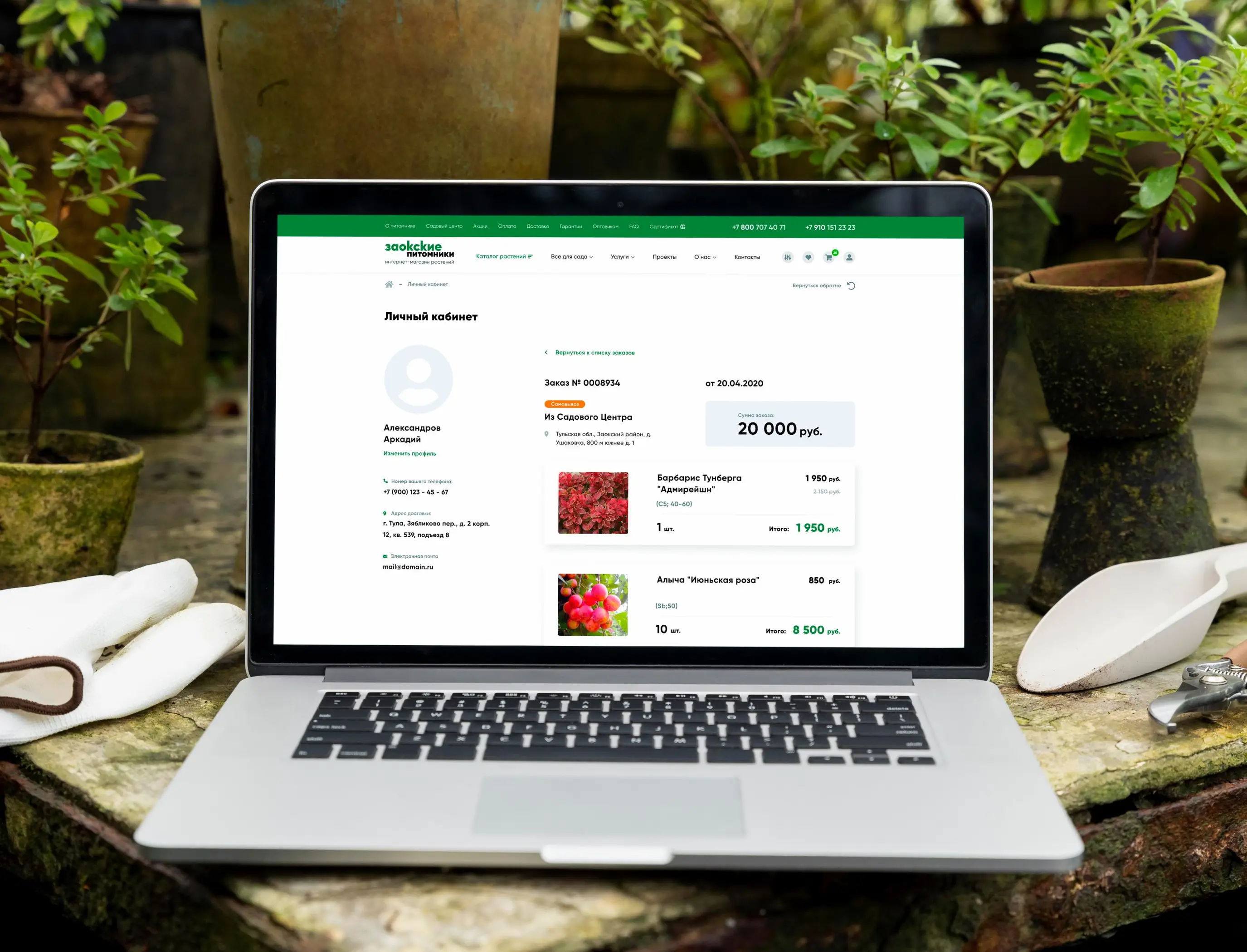 Создан функциональный интернет-магазин с каталогом растений, разделами об услугах, информации о питомнике и контактных данных. Внедрена система фильтрации товаров по категориям и характеристикам, обеспечено удобное оформление заказов и предоставление информации о доставке и оплате.
